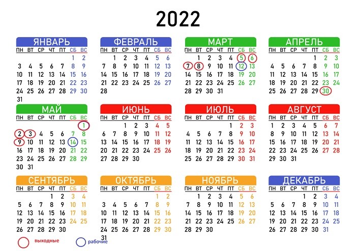 Производственный календарь на 2022 год.