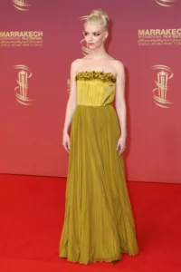 Аня Тейлор-Джой блистала в золотистом платье без бретелек во время появления на красной дорожке 22-го Международного кинофестиваля в Марракеше. Она позировала в плиссированном платье в пол с узором в области декольте. Аня собрала свои платиновые светлые локоны в элегантную прическу, а в качестве аксессуаров выбрала бриллиантовые серьги-гвоздики. Аня Тейлор-Джой На киновечере к Тейлор-Джой присоединилась звезда …