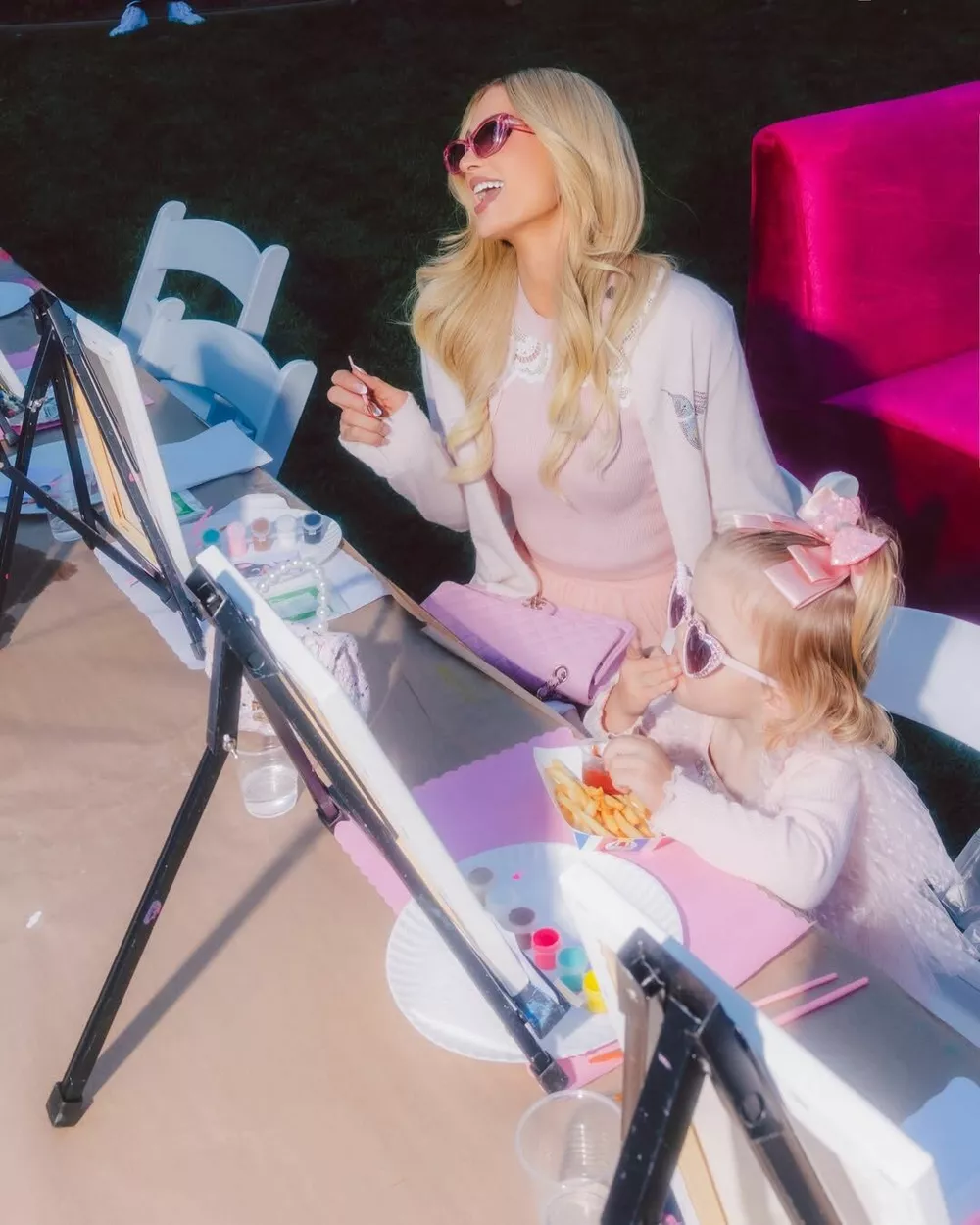 На дне рождения Лондон Пэрис организовала целую зону для игр — бассейн с шариками, игрушечный салон красоты, уголок для рисования, а также фотозону с щенками, поддержав таким образом местный приют. В прошлом году светская львица так же пышно отмечала день рождения дочери, устроив вечеринку в стиле “Алисы в стране чудес”.